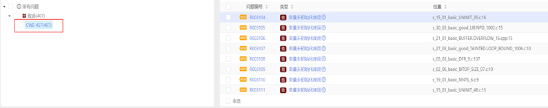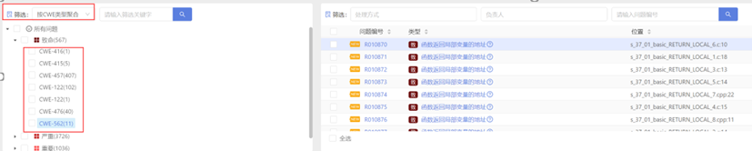 After the detection, the problem list area of the detection results can be grouped and displayed according to the CWE type, as shown in Figure 12.