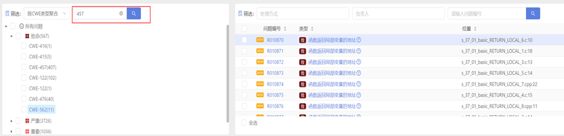 At the same time, enter the CWE number in the search box to find the defect corresponding to the specified CWE number, as shown in Figure 13 and Figure 14.