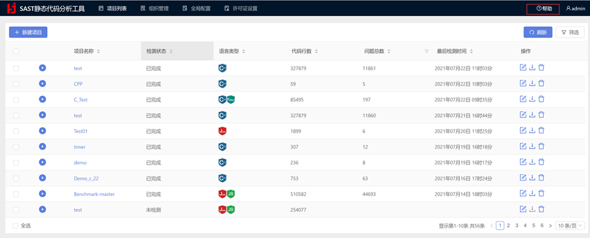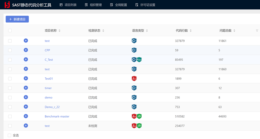 Users click "new project" on the project list page to create a new project and automatically analyze the security defects in the code. On the create project page, enter the project name and import the project source code, as shown in Figure 9.