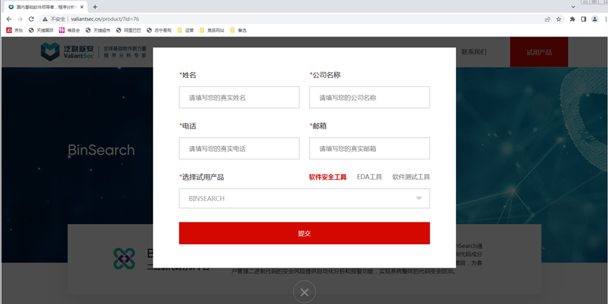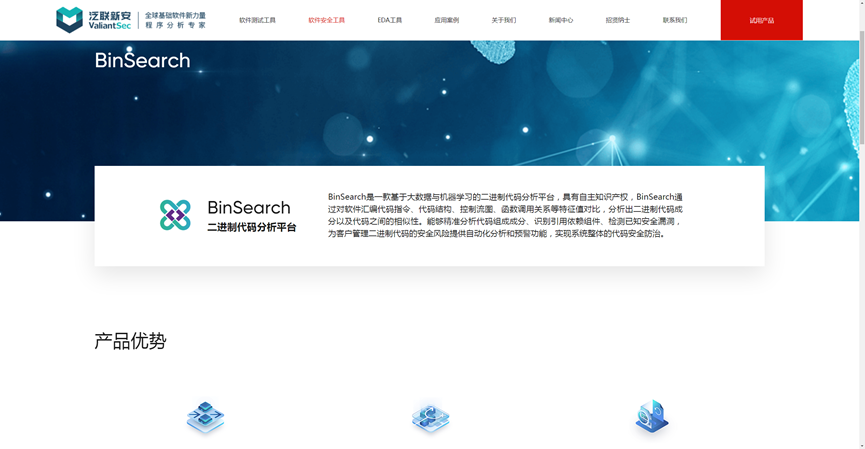 1.Open the official website of CodeSense http://www.ubisectech.com/product/?id=76, and first click the red button "试用产品(trail)"in the top right corner, as shown in Figuer 1.