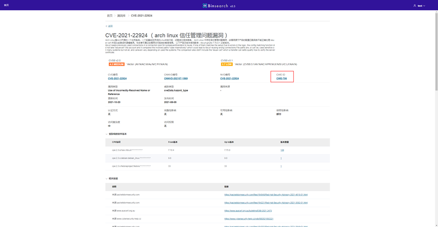 After the analysis is over, the user searches for the corresponding CWE number, displays the vulnerability information mapped to the CWE number, clicks on the vulnerability details, and enters the vulnerability details page to view the vulnerability details. as shown it the Figure10.