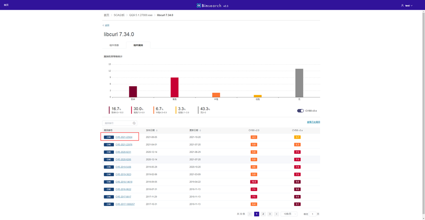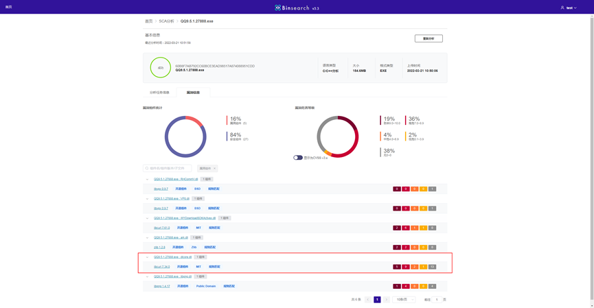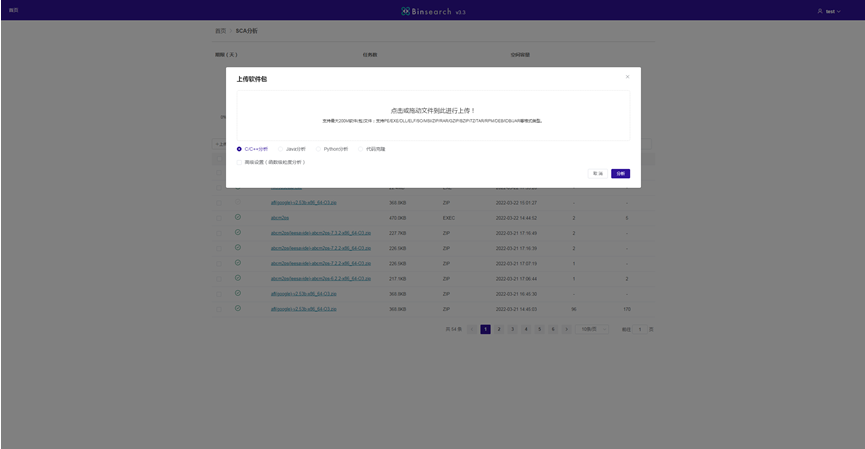 Users can import projects and analyze them. Click the "SCA分析" module to create a new project, as shown in Figure4.The user can upload his files. After the test is completed, the user can click the "CWE" button to view the test results, as shown in Figure6.Also the Users can look at the corresponding vulnerabilities, Click the vulnerability name to view the corresponding project information, as shown in Figures 11 and 12.